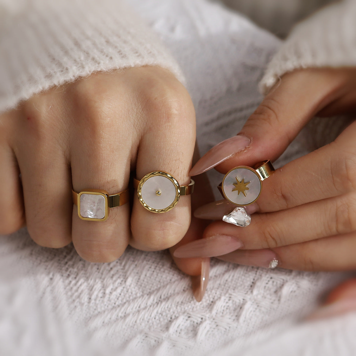 Anel Concha do Mar Ajustável em Aço Inoxidável Banhado a Ouro 18K é um metal nobre legítimo que evoca a serenidade do oceano com extrema elegância. Esta joia hipoalergênica é resistente à oxidação e à prova de suor, mantendo um brilho renovável e altamente durável. Seu design central circular com detalhes em concha proporciona um toque sofisticado e orgânico, enquanto o aro ajustável garante conforto absoluto. Um acessório luxuoso e versátil para quem busca qualidade impecável.