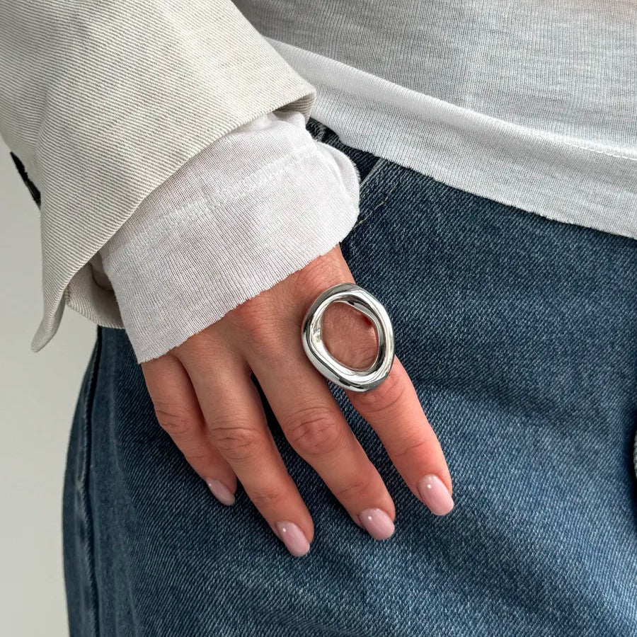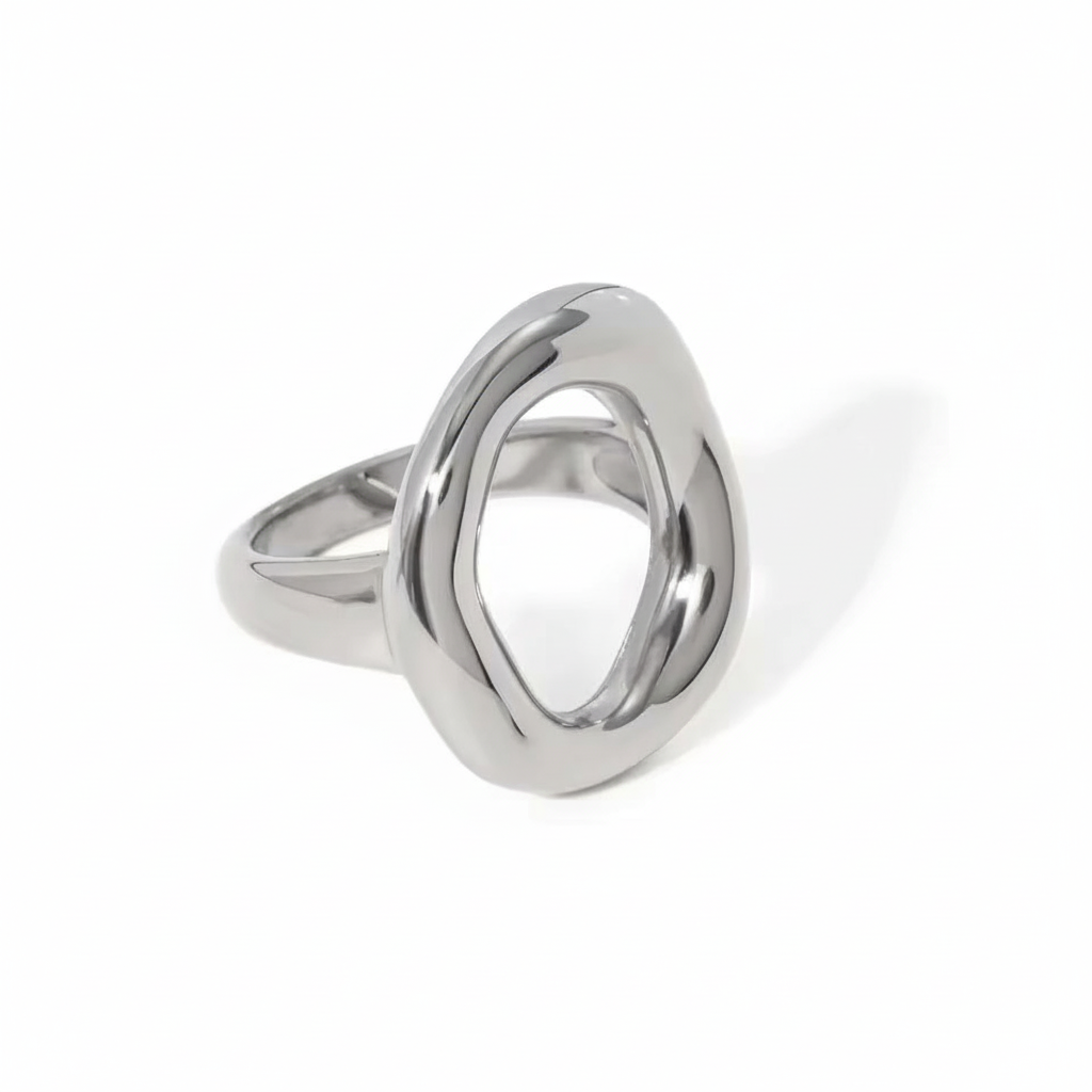 Anel Maxi Orgânico Oval Vazado Aço Titânio Dourado/Prata 35mm
