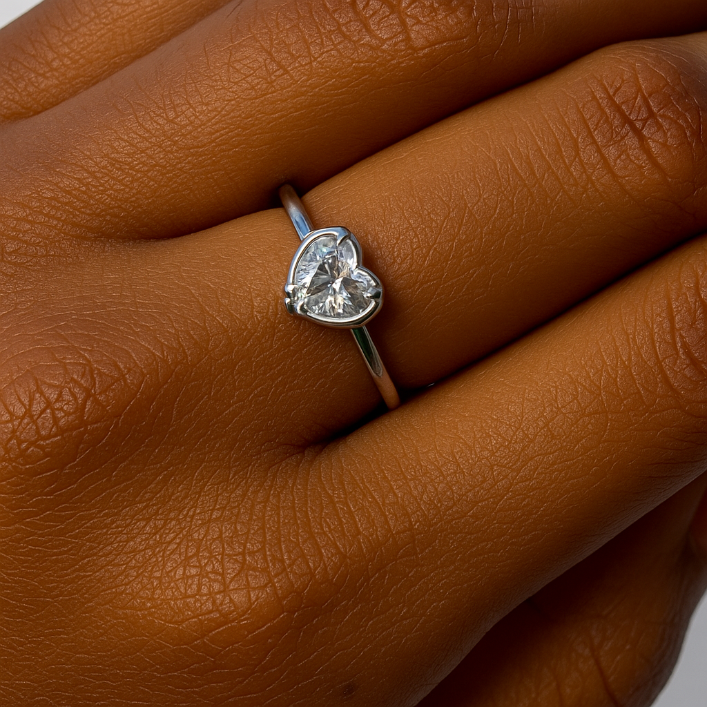 Anel Solitário Coração Prata 925 com Zircônia Brilhante 6mm