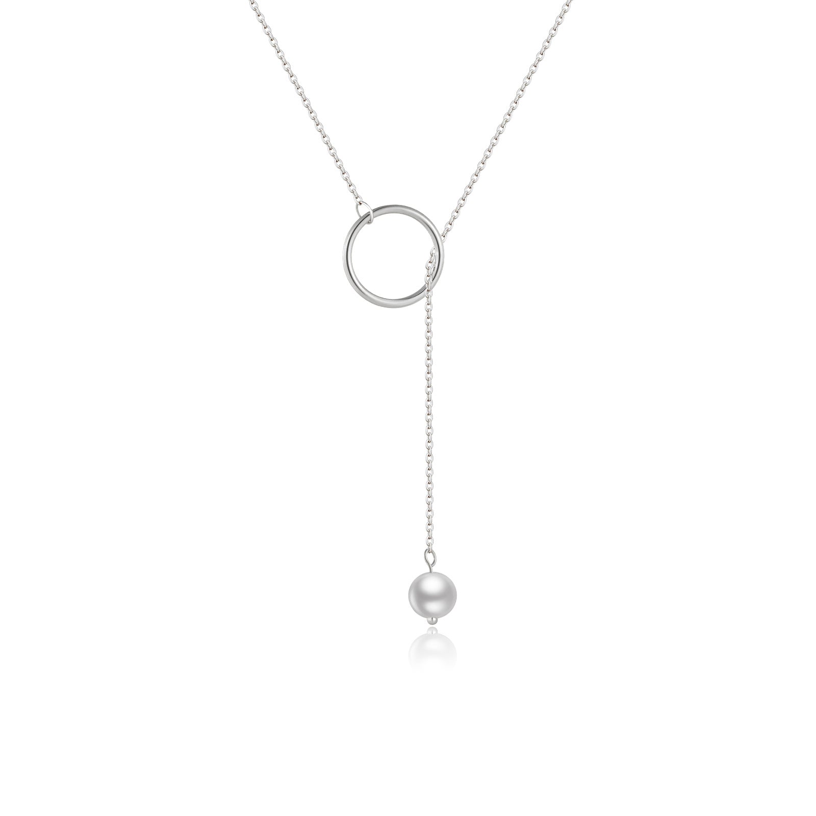Colar Gravatinha Círculo e Pérola Prata 925 65cm
