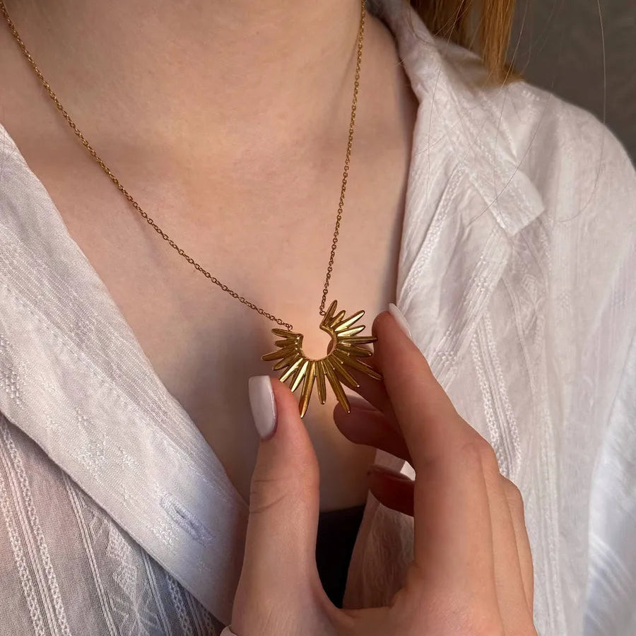Colar Pingente Sol Radiante em Aço Titânio Dourado 43 cm com Extensor